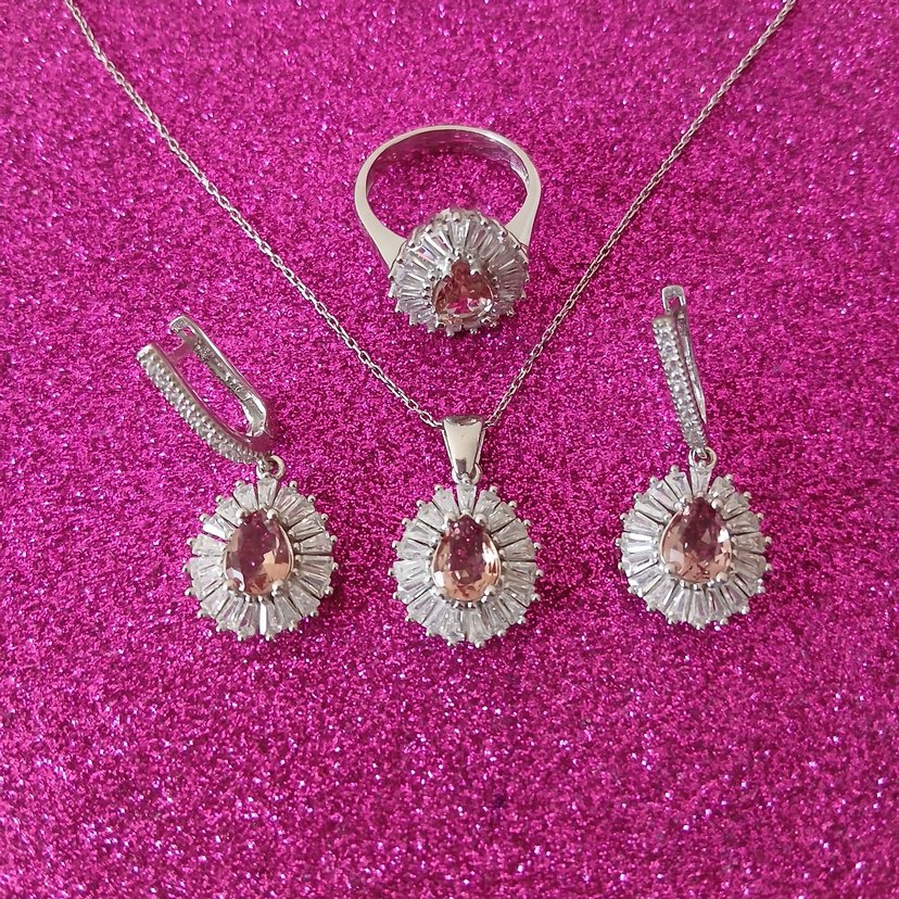 gumus set 925 ayar zultanit ve beyaz baget taşli.yuzuk boyu.16.nm setin toplam agirligi.16.grm