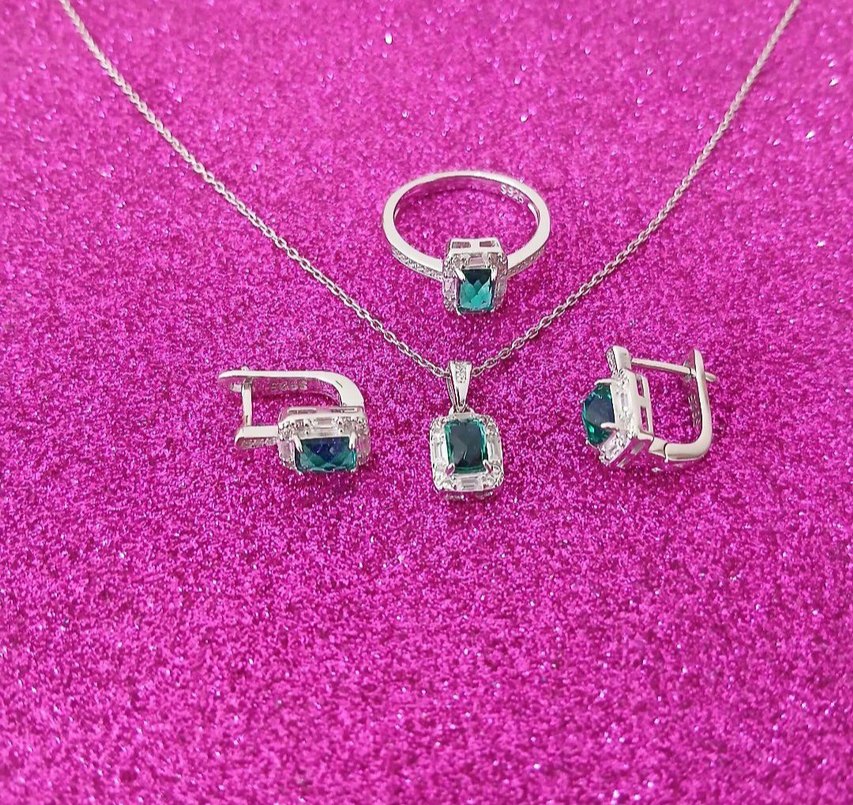 GUMUS SET 925 AYAR YEŞİM TAŞLİ..yuzuk boyu.18 numara