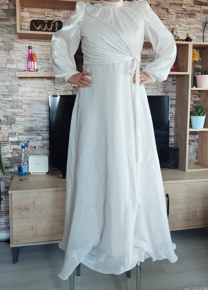 ürün sıfır ayarında sadece 1 saat kullanıldı iki kol arası 45 sn boyu 1,47 bel önden 44 sm kalıbı dar 40,42 uyumlu resimde giyenin boyu 1,60 kilosu 65 rengi ilk resimdeki gibi yaklaştırısanız belli oluyor