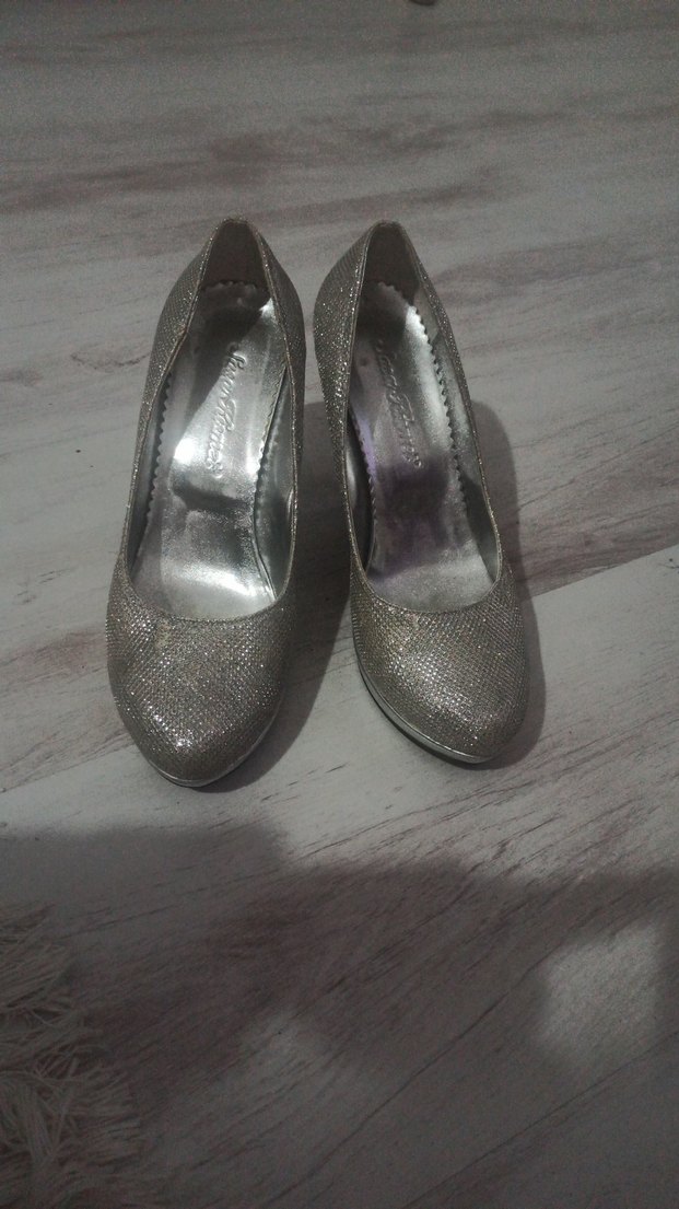 Gümüş Simli İnce Topuklu Kadın Ayakkabı