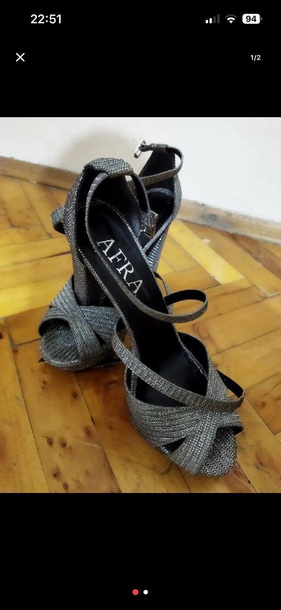 Gümüş taşlı topuklu ayakkabı