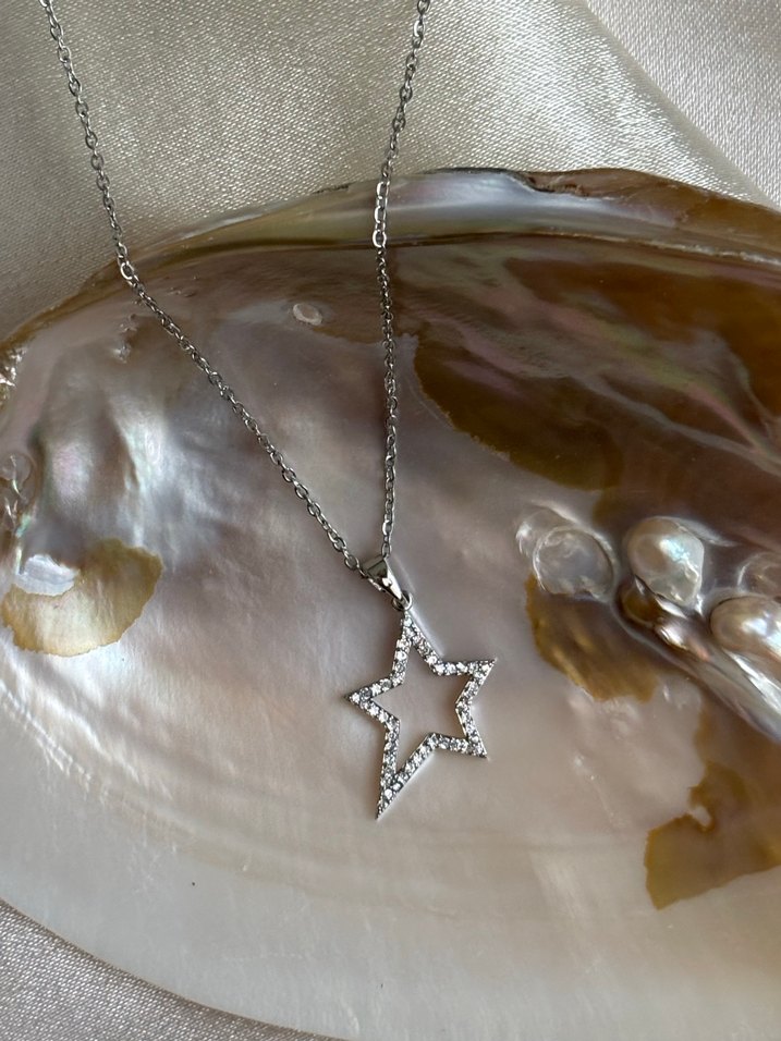 Gümüş Taşlı Yıldız Çelik Kolye