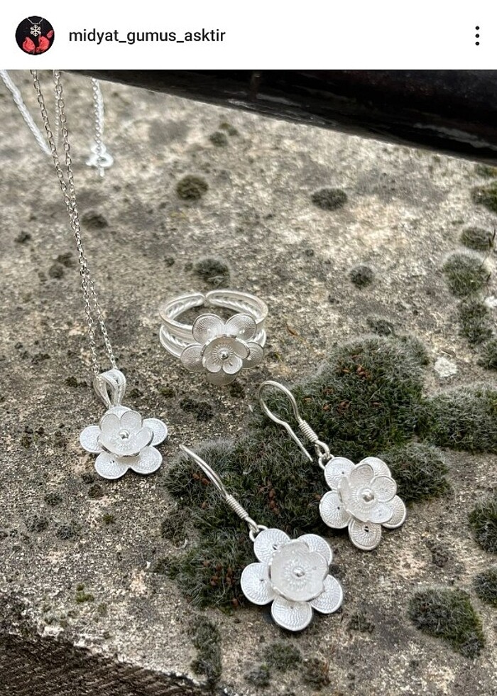 Gümüş telkari set. Yüzük kolye küpe