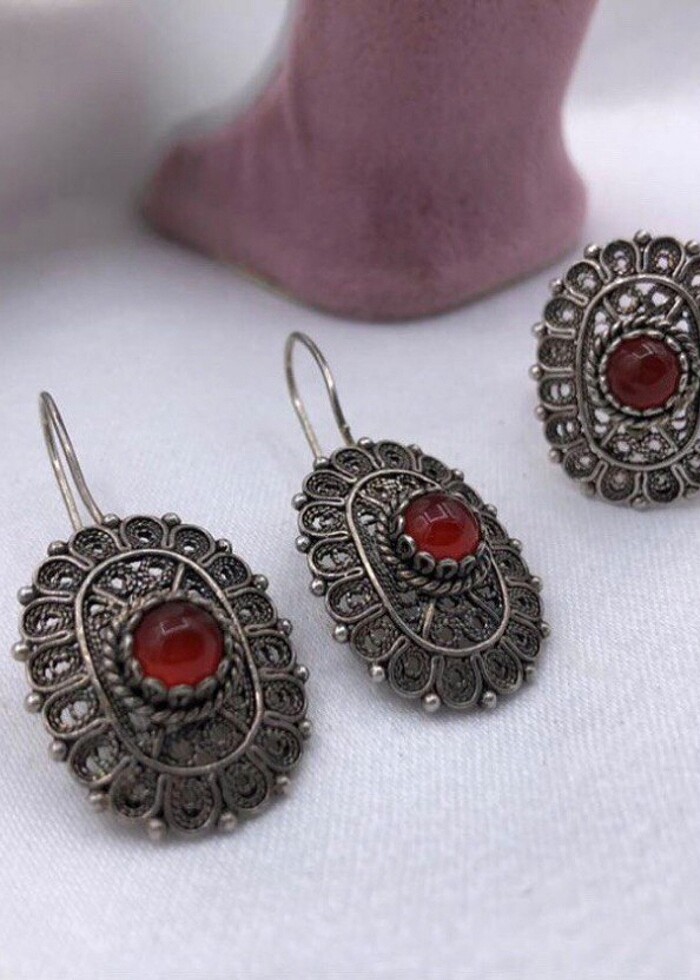 Gümüş Telkari Set doğal taşlı 925 ayar 11,68 gram yüzük ölçüsü 15,5. Son fiyat lütfen indirim teklif etmeyiniz