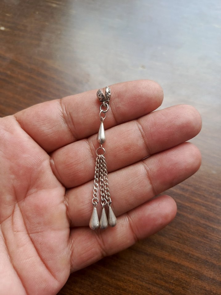 Gri renkte, püsküllü minimal bohem kadın el zinciri, günlük kullanım için uygundur. ✨