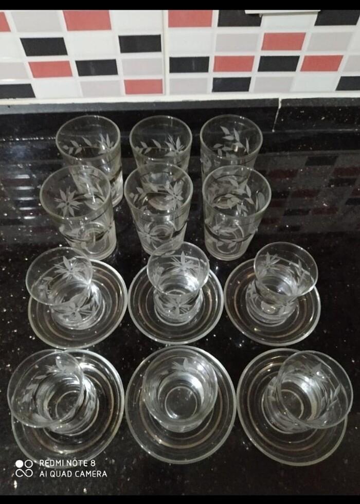 Gümüş varaklı 18 parça çay ve su seti