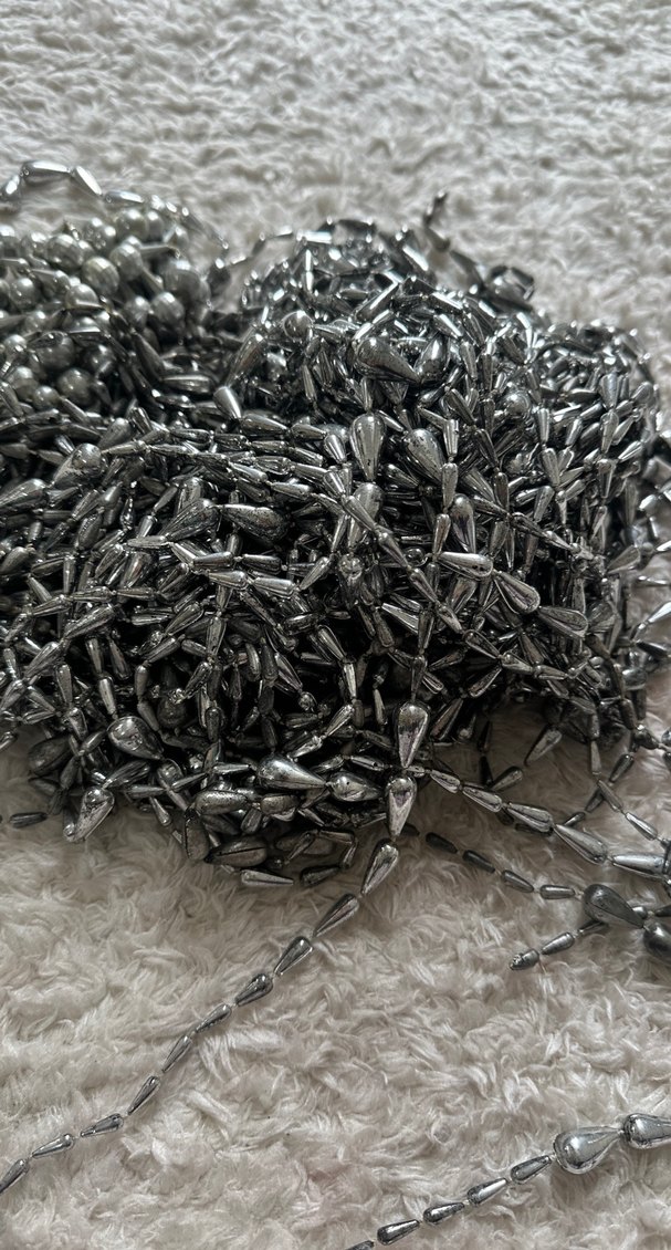Gri renkte, küçük ve parlak damla şeklinde tırnak süslemeleri. Metalik ve yansıtıcı yüzeyleri ile dikkat çeker.