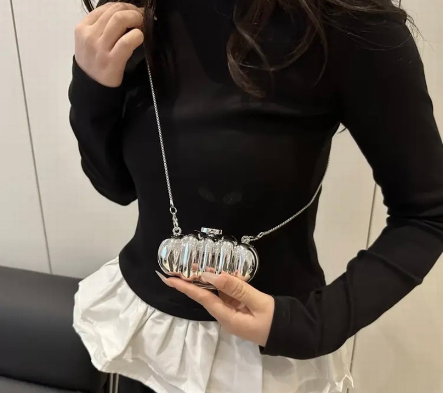 zincir detaylı parlak metal portföy çanta, klasik şıklık ve günlük kullanım için uygun. Mini gümüş ruj çantası ölçülerine bakarak alınız