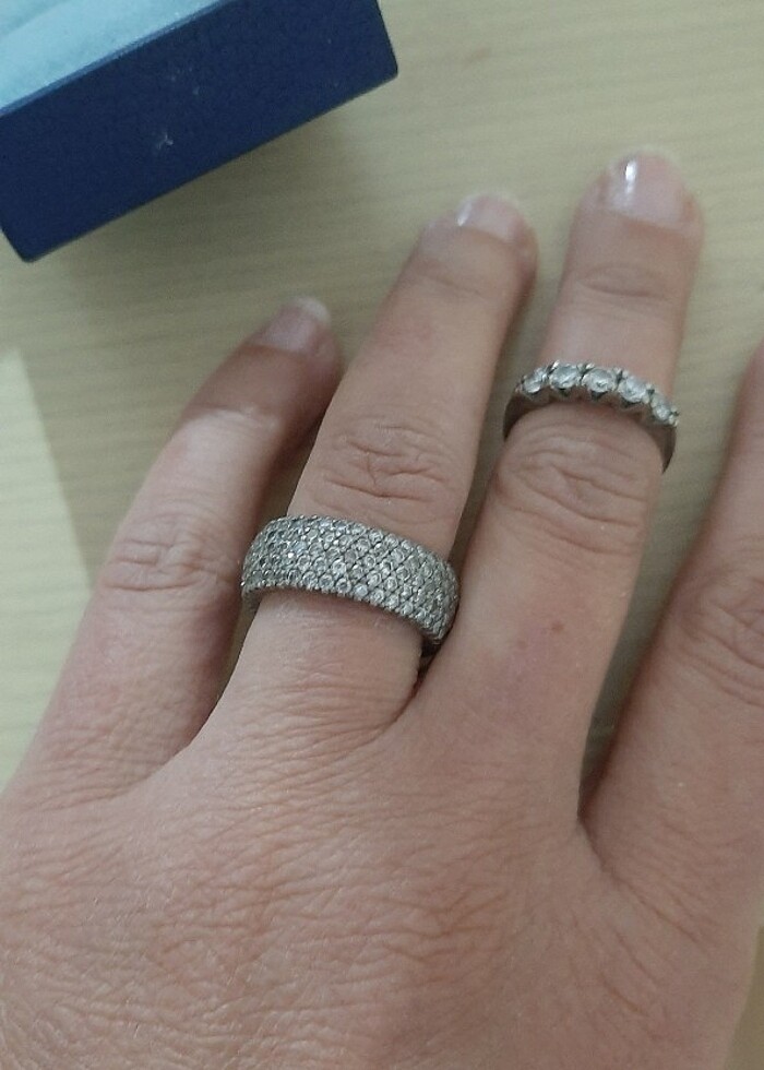 925 ayar zirkon alyans gibi de kullanılabilen yüzük. Sanırım 6 numara.. yanında yine 5 taş gümüş yüzük