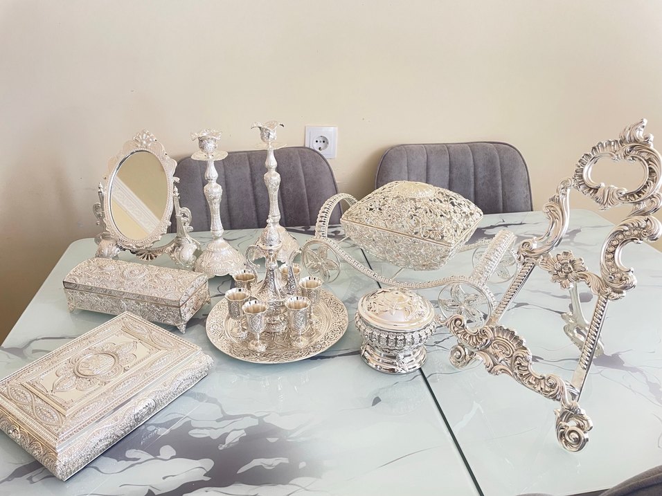 20 parça gümüşlük seti İçindekiler Ayna 2 li şamdan Takı kutusu Kur’an kabı Fincan seti Şekerlik Çerçevelik Sepet