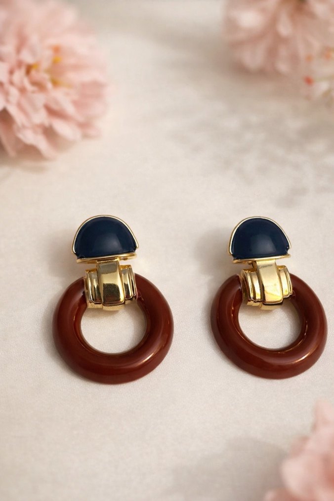 Hem rahat olmak hem de stil sahibi görünmek isteyenler buraya! En sevdiğin sweatshirt veya jean ceketinle harika duracak lacivert ve bordo renkte bu küpelerle, spor tarzına iddialı bir dokunuş ekle. Modern çizgiler ve vintage renklerle günün her saati parlamaya hazır ol.
