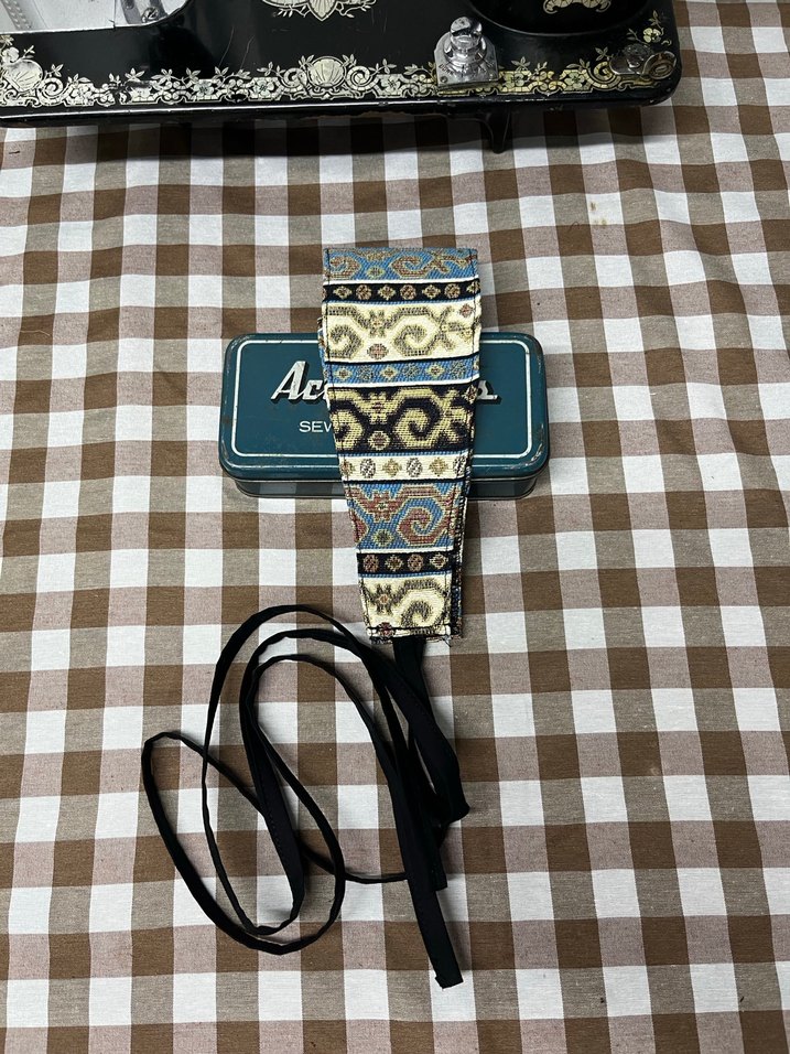 Koyu renkli ve çok renkli batik desenli yoga kayışı, esneme ve esneklik için bağlama ipleriyle birlikte.