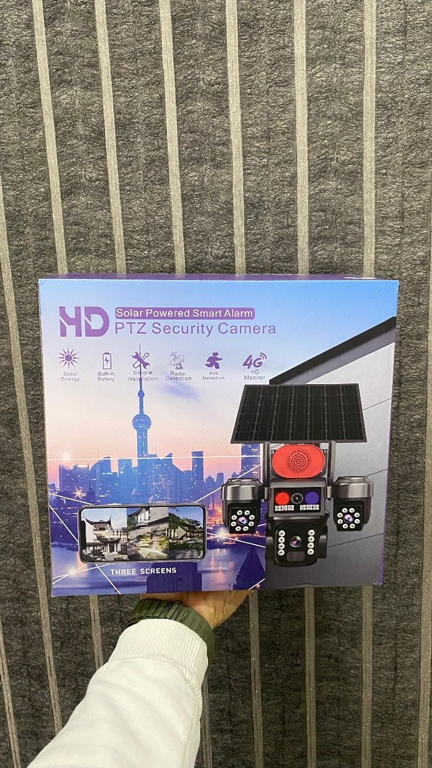 Güneş enerjili, 4G bağlantılı, hareket algılama ve akıllı alarm özellikli çok renkli PTZ güvenlik kamerası. Üç ekranlı izleme imkanı sunar.