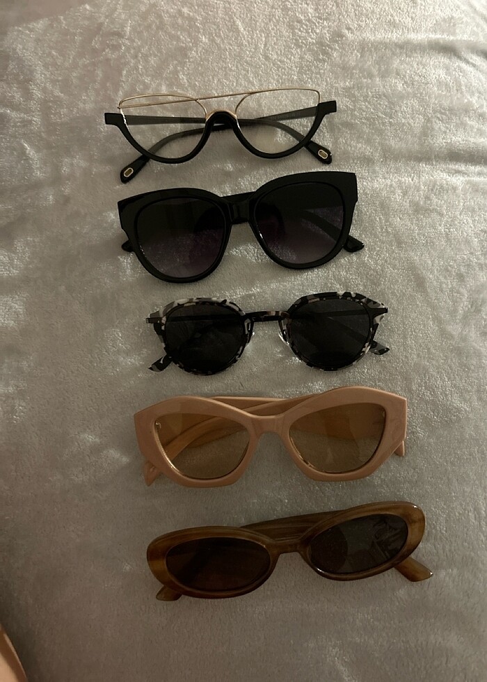 pembe olan ve yanlari siyah beyaz olan boyner, kahverengi olan hm, siyah mango, sonuncu ise mavi isik koruma camli seffaf gozluk ilan ve detayli foto icin yorum atabilirsiniz