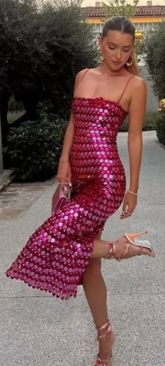 New Arriwals Pullu fuşya payetli elbise