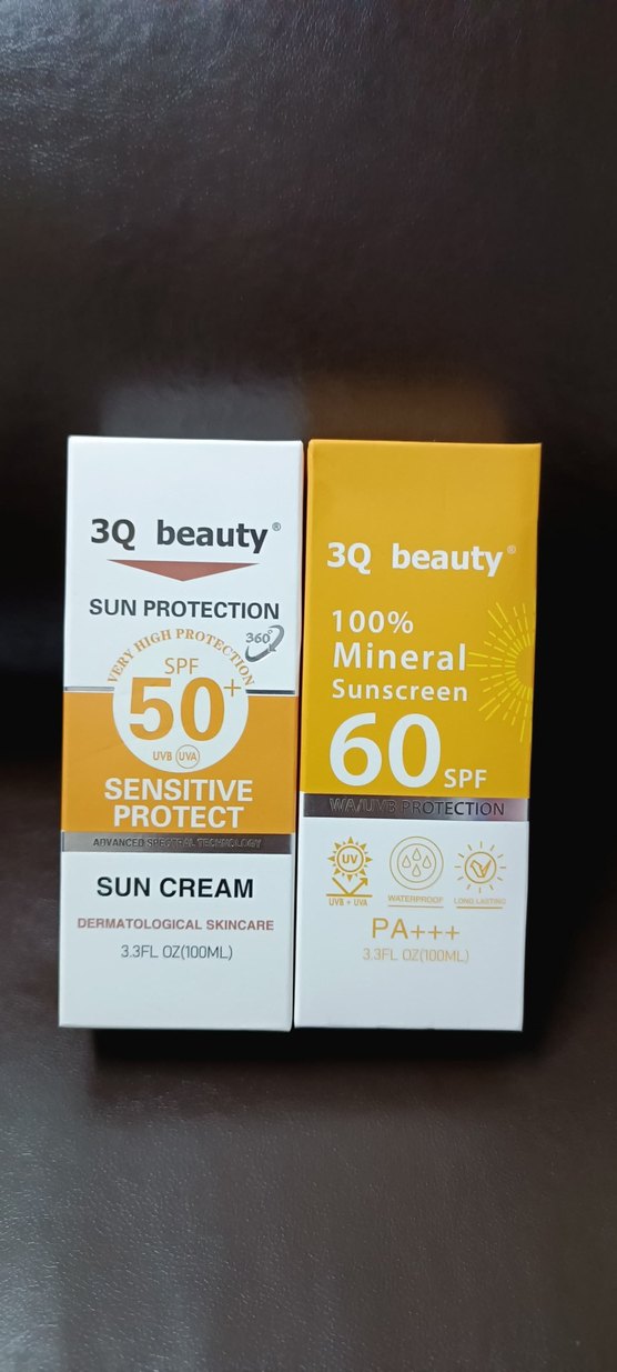 güneş kremi yurtdışından aldım yeni 2 adet 3Q Beauty'nin SPF 50 ve SPF 60 mineral güneş kremleri hassas ciltler için yüksek koruma sağlar. PA+++ dereceli, suya dayanıklı ve 100 ml boyutundadır. ☀️tane fiyatıdır
