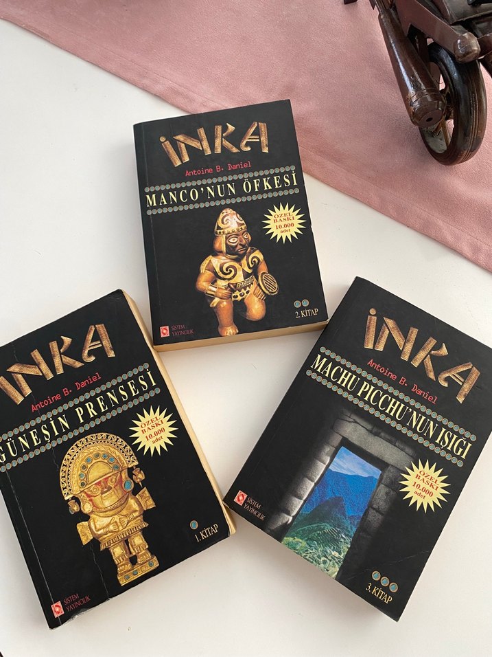 Inka Serisi:Güneşin Prensesi,Manco’nun Öfkesi,Machu Pıcchu’nun Işığı Seti. İlk sayfalarda Ad Soyad ve tarih yazmaktadır. 3.Kitabın ilk sayfasında biraz açılma var görsel olarak yükledim.