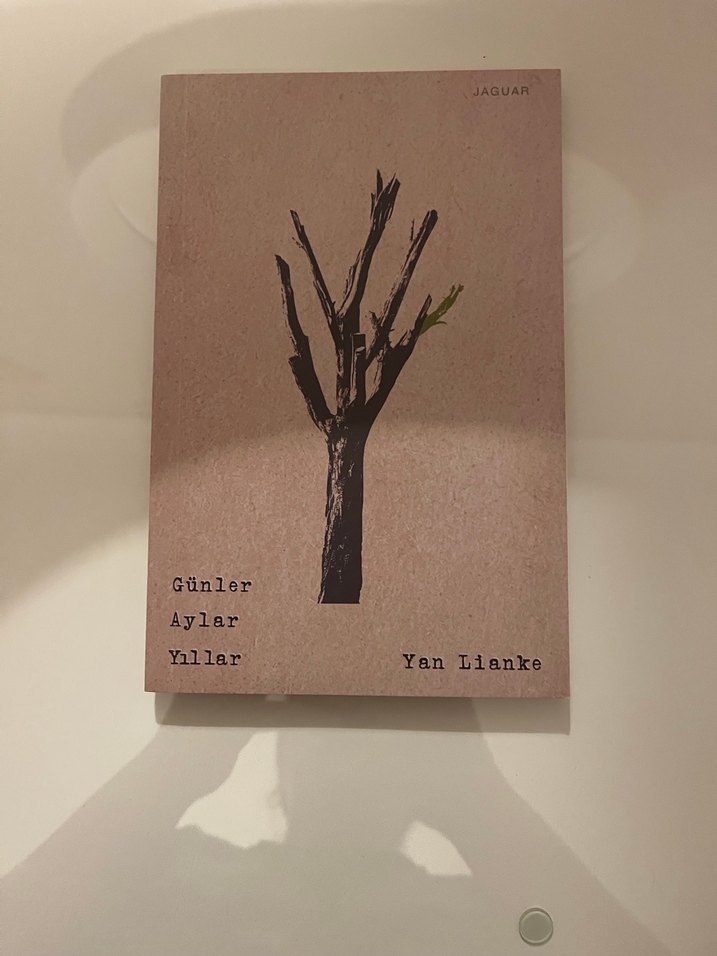 Yan Lianke'nin 'Günler Aylar Yıllar' adlı romanı, ağaç illüstrasyonlu sade kapak tasarımıyla Jaguar yayınevinden.