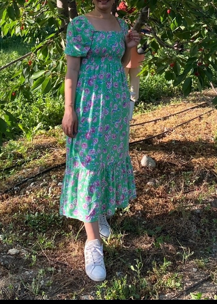 36 -S beden çiçekli giy çık günlük elbise. Butikten almıştım o yüzden belli bir markası yok