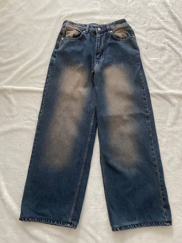 Navy renkli denim kadın pantolon, geniş kesim ve normal boy ile rahat sokak stili ve günlük kullanıma uygun şık görünüm sunar. S. Beden 12-14-16 yaş rahat kullanır