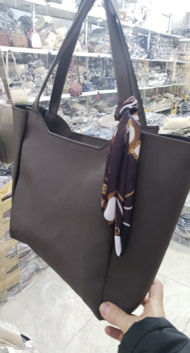Kahverengi sentetik kumaştan yapılmış, yılan desenli ve tokalı detaylı kadın çantası, günlük kullanıma uygun modern tarzda.
