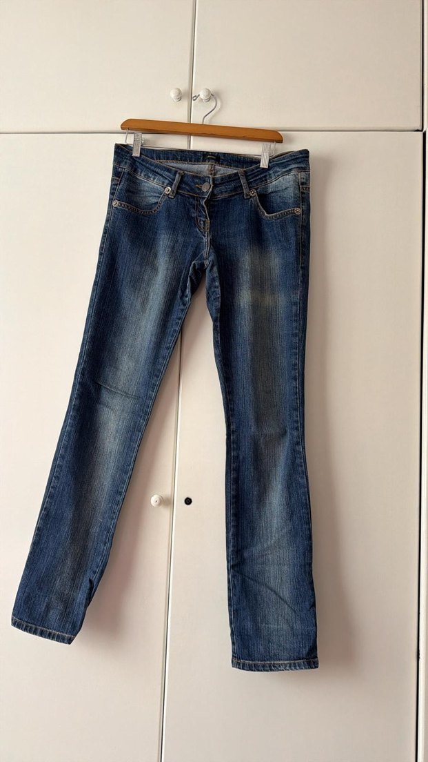 Mavi denim kumaştan, normal boyda ve regular fit kesime sahip, günlük kullanıma uygun rahat ve şık kadın jean pantolon. gayet iyi durumda. Bel 44 cm Düsük bel Kemerden bacak paçasına kadar 102 cm Agdan paçaya kadar 84 Agdan bele kadar 27 Düsük bel 29 beden tam ölçü Boru paça Paça genıdlıgı 17 yarım ölçüde