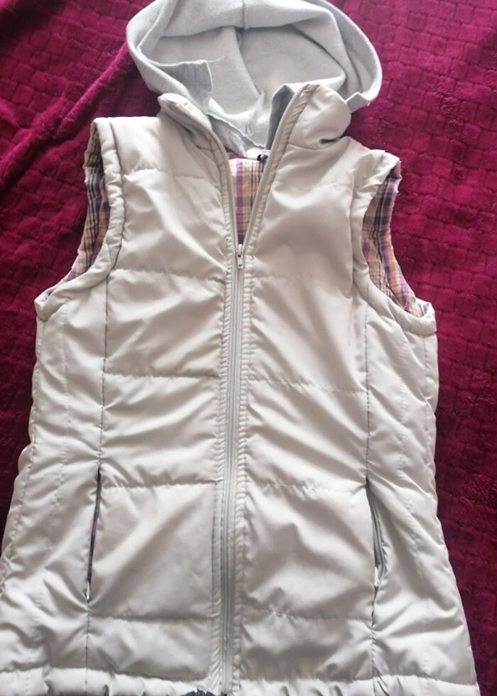 Ürünün kusuru yoktur, temizdir, S beden uyumludur, sapkası cıkarılabılıyor. Ikı yönlü kullanılabilir
