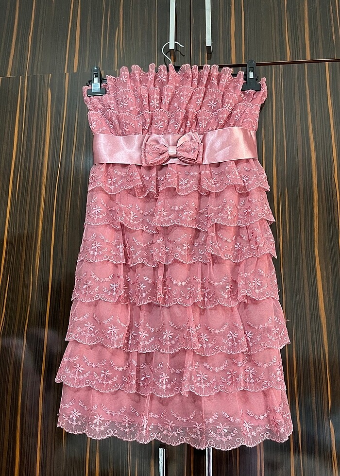 Güpür dantelli pudra abiye elbise sadece bir kere Mezuniyette gi