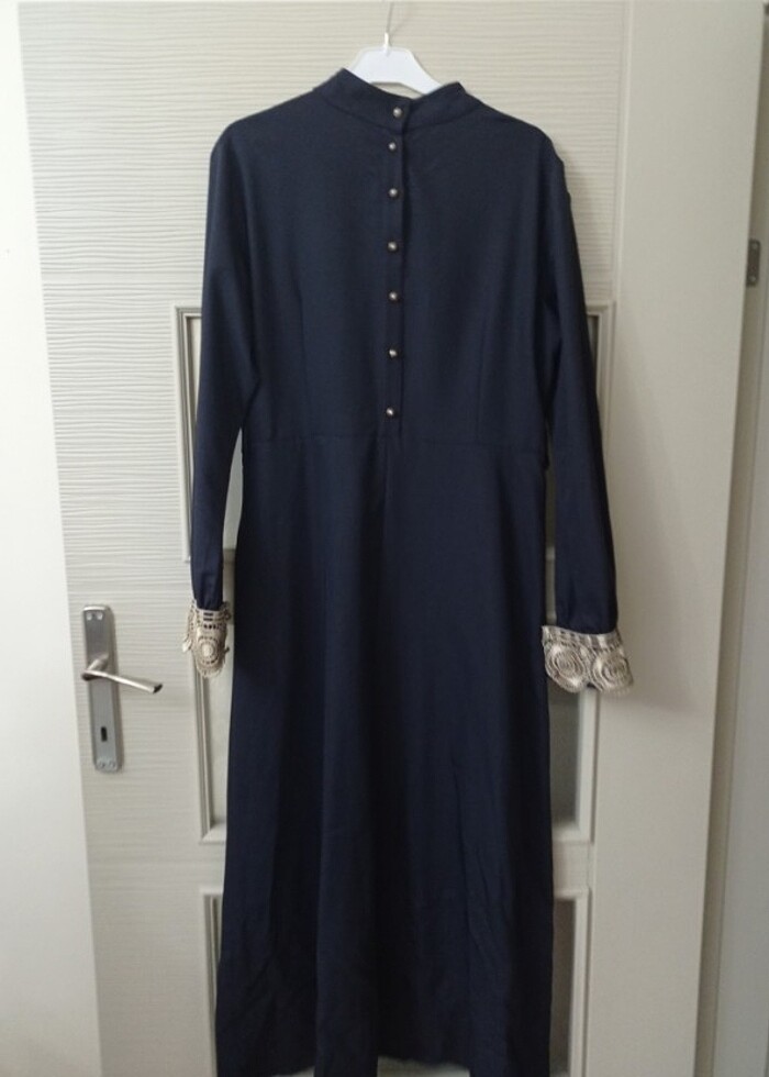 Güpür detaylı lacivert elbise