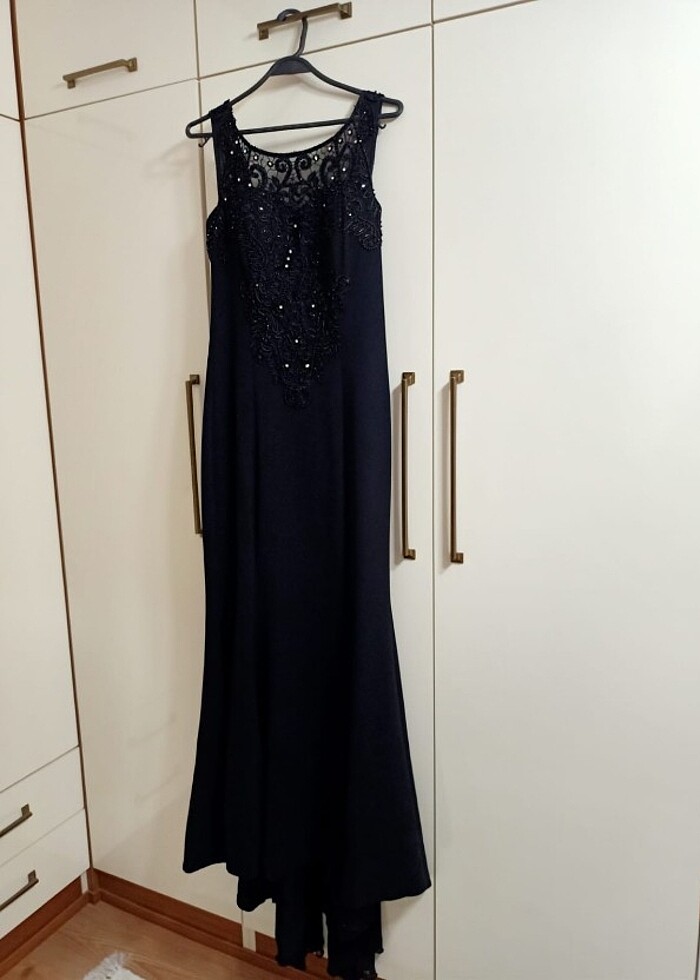 Ürün yalnızca 1 kez kullanılmıştır. Kuru temizleme yapılmıştır. Görseldeki gibidir. Hiçbir sorunu yoktur. Ön kısmı güpür dantel işlemedir. Sade çok şık bi abiyedir. Arkasında kuyruk payı vardır. Sırt kısmı ipli olup ayarlanabilir. Bedeni 2 olarak geçiyor 38 bedene karşılık geliyor.