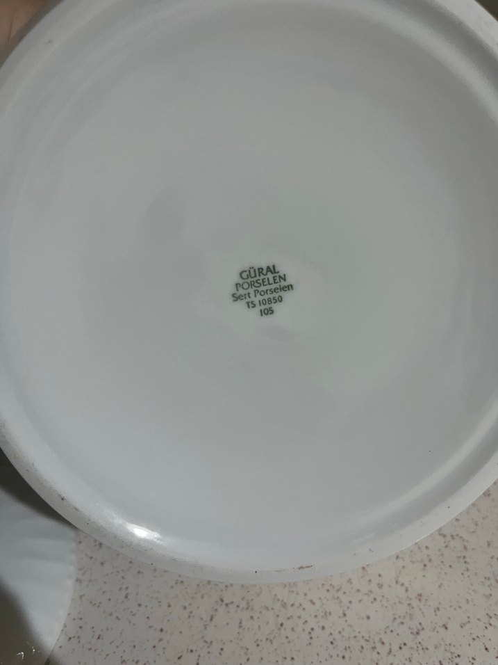 Güral Porselen markalı, desensiz beyaz porselen tabak. Düz ve sade tasarıma sahip, gri tonlar içerir. ️