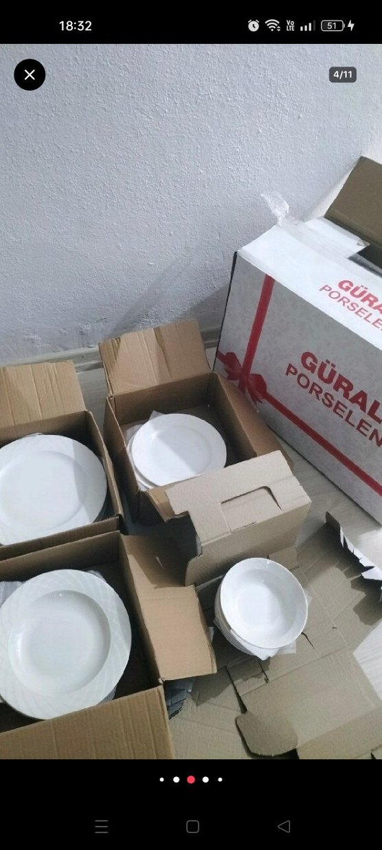 Güral Porselen beyaz porselen tabak ve kaseler, karton kutularda düzenli şekilde paketlenmiştir. Günlük kullanım için uygundur. ️12 kişilik 24+24~48 parça fiyatı Lüleburgaz içi elden teslim edilir.