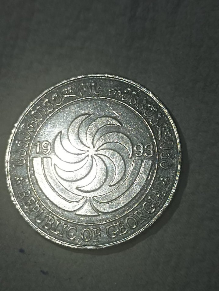 1993 tarihli Gürcistan Cumhuriyeti amblemli vintage gri rozet, eşsiz dönen desenle dikkat çekiyor. ️