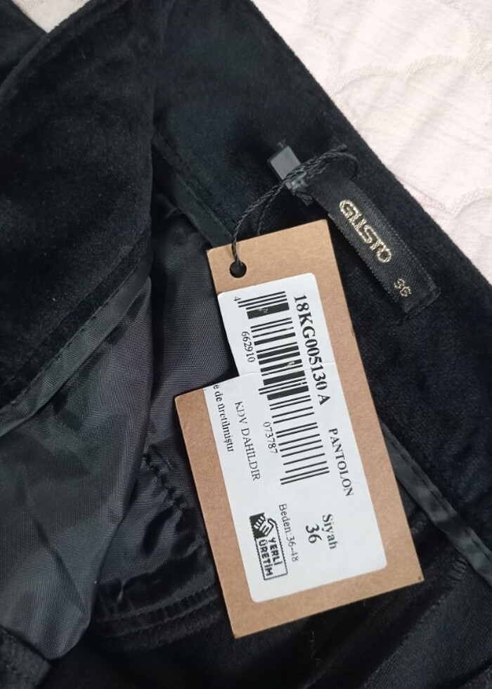 Etiketli hiç giyilmemiştir kumaş pantolon tarzı kadifedir