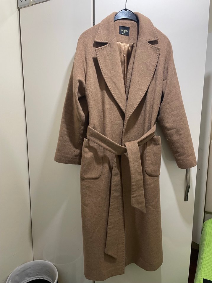 GUSTO Markalı uzun Kaşe kaban içeriğindeki %45 yün oranı sayesinde sıcak tutma özelliği var ve üzerinde kullanıma engel olmayan yün kumaşın doğasından kaynaklı hafif tüylenmeler mevcut kullanıma engel deil XS
