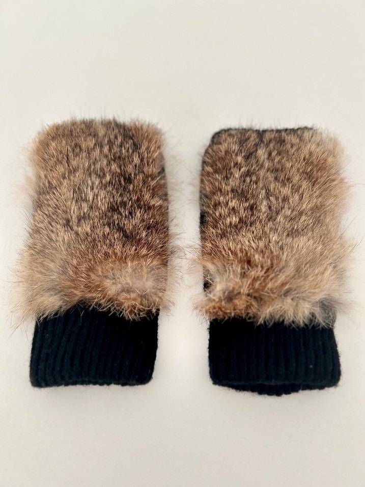Gusto Marka Kahverengi Kürklü Siyah Trikolu Kadın Eldiven
