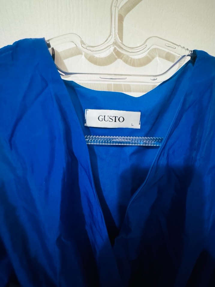 Mavi renkli,, V yaka ve Kısa kollu, uzun ve bol kesimdir. Yanlarda yırtmaç olup gece elbisesine uygundur