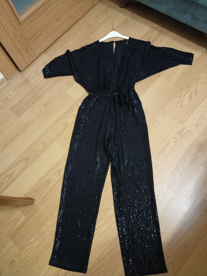 Gusto S beden Siyah Parlak Uzun Kadın Tulum