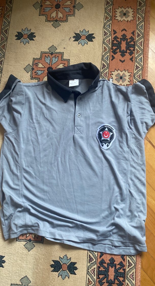 Güvenlik Gri Baskılı Kısa Kollu Polo Tişört