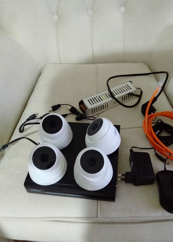 Temiz sorunsuz az kullanıldı süper sistem . Görüntü kalitesi iyi. 4 lu uzaktan izlemeli cihaz 4 kamera 1 tb harddisk Güç kaynağı Mause Ethernet kablosu