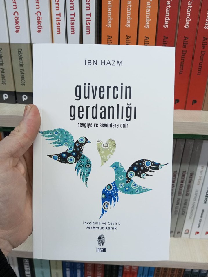 İbn Hazm'ın "Güvercin Gerdanlığı" adlı eseri, sevgi ve sevenlere dair inceleme ve çeviri Mahmut Kanık tarafından yapılmıştır. Kapakta sanat eseri güvercin figürleri yer alır. Kargo ücreti 80 TL