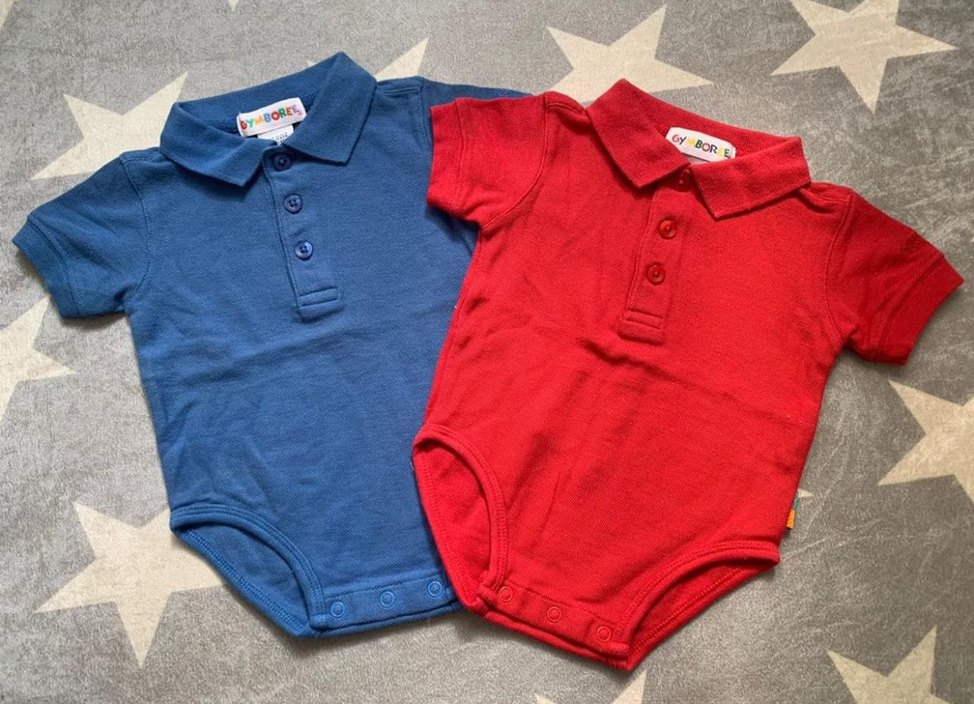 Gymboree, 2 adet yakalı pike dokulu 100% pamuklu yumuşacık bodyler. 6-12Ay, Kırmızı ve Mavi, USA den alınmış fakat giyme fırsatı olmamıştır.