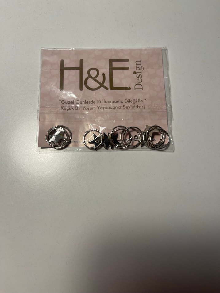 H&E tırnak süsleme seti, bej ve gri tonlarda küçük halkalar içerir, tırnak sanatınızı zenginleştirir.
