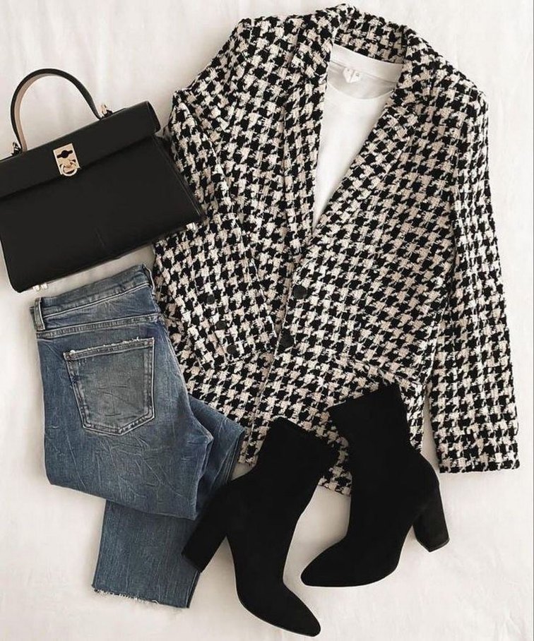H&G Design Kazayağı Desenli Kışlık Kadın Blazer