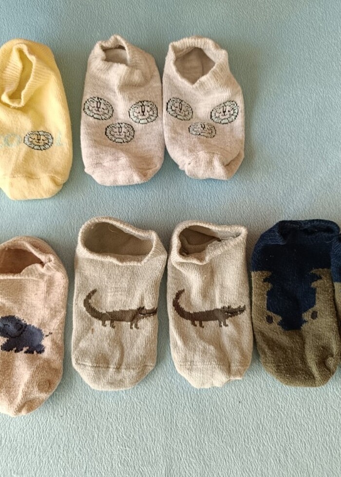 Alttaki üç tanesi H&M, üstteki iki tanesi Civil. Çok az kullanıldı, yırtık sökük yıpranma yok. Toplam fiyatıdır. Yazlık, pamuklu, güzel çoraplar.