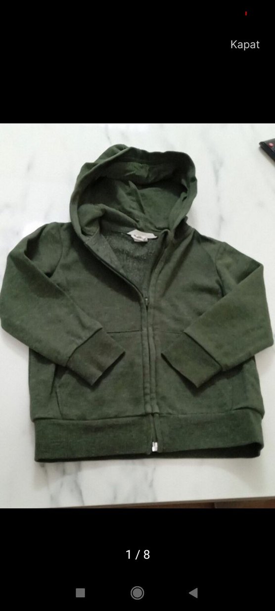 Erkek çocuk için kapüşonlu, fermuarlı ve uzun kollu, düz haki renkli.Çok temiz kullandık.