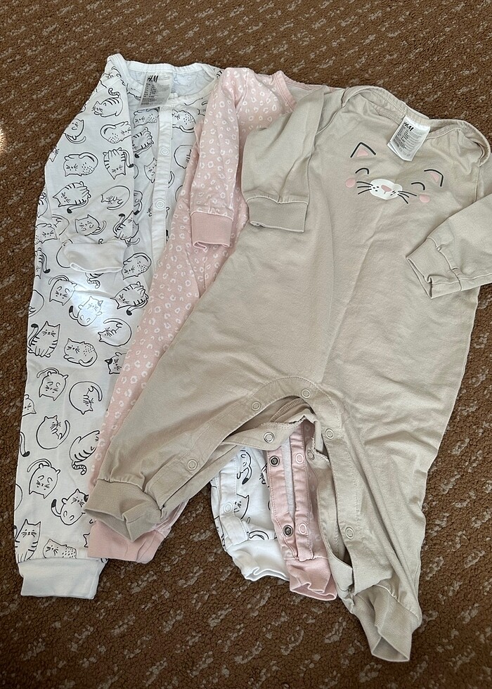 Hepsi 100% pamuktur, çok kısa bir süre ilk baharda kullandık (ürünler temiz kullanılmıştır sorunları yoktur). Kışın eviniz sıcaksa uzun kollu zıbınla giydirebilirsiniz. Üçü beraber satılıktır, tek fiyat için lütfen yazınız. ( pembe olanda hafif bir leke var sağ tarafında yakasına doğru fotoğrafını koydum, leke çıkarıcıyla çıkar çorba lekesi çünkü).