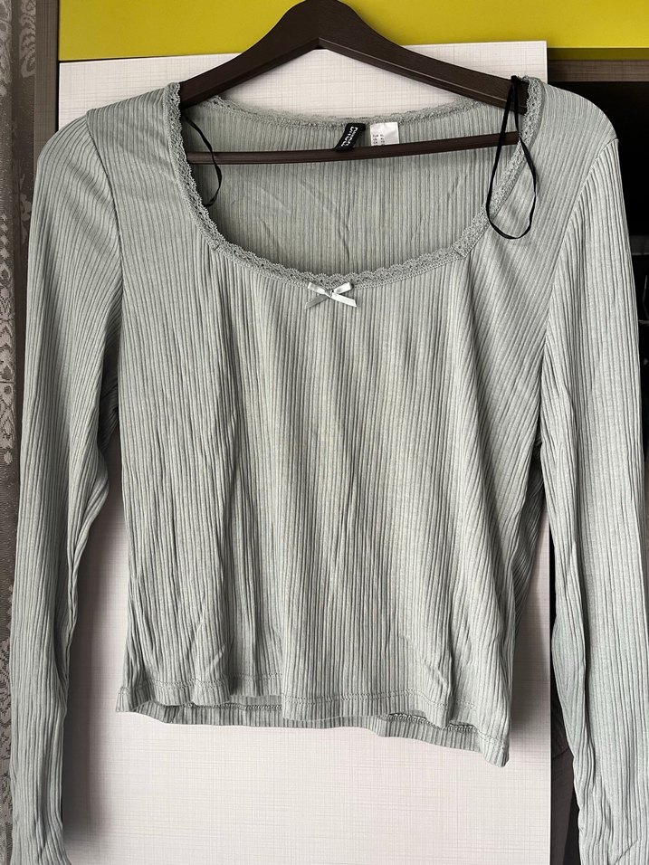 H&M açık yeşil-gri Uzun Kollu Kadın Bluz