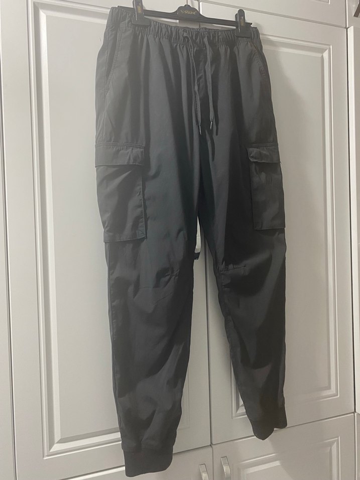 H&M marka Antrasit renk cepli paraşüt kumaş beli lastikli çok rahat erkek eşofman altı.Boy 107 cm,bel 88 cm (lastiği açılınca 110 cm oluyor )M beden