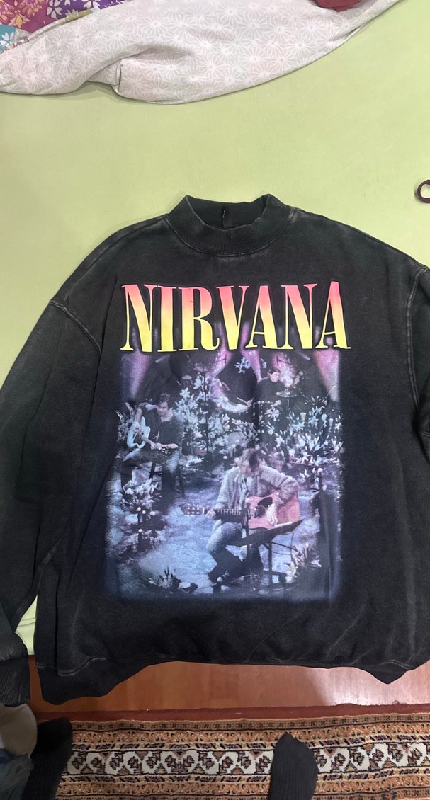 H&M antrasit oversize dik yaka nirvana sweatshirt